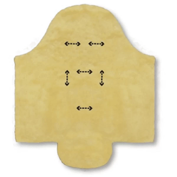 - Binnenin volledig gevoerd met medisch gelooid lamsleerLamsharen met een lengte van ca. 30 mm, geschoren, met een laagje lamsvel